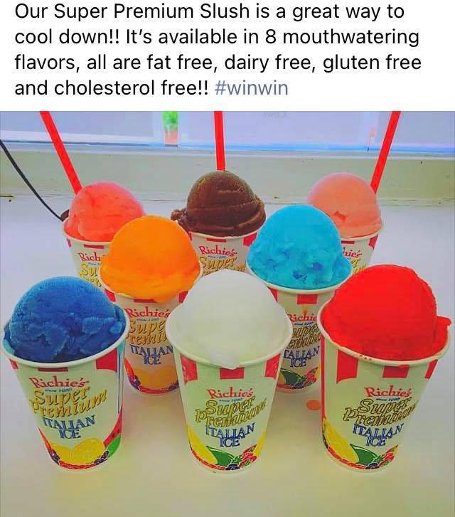 Keywords Ice Cream, Frozen Yogurt, Sherbet, Soft Serve, Vegan Ice Cream, Ice Cream Sundaes, Gluten Free Ice Cream, Richie's Slush, Jumbo Hot Dogs.